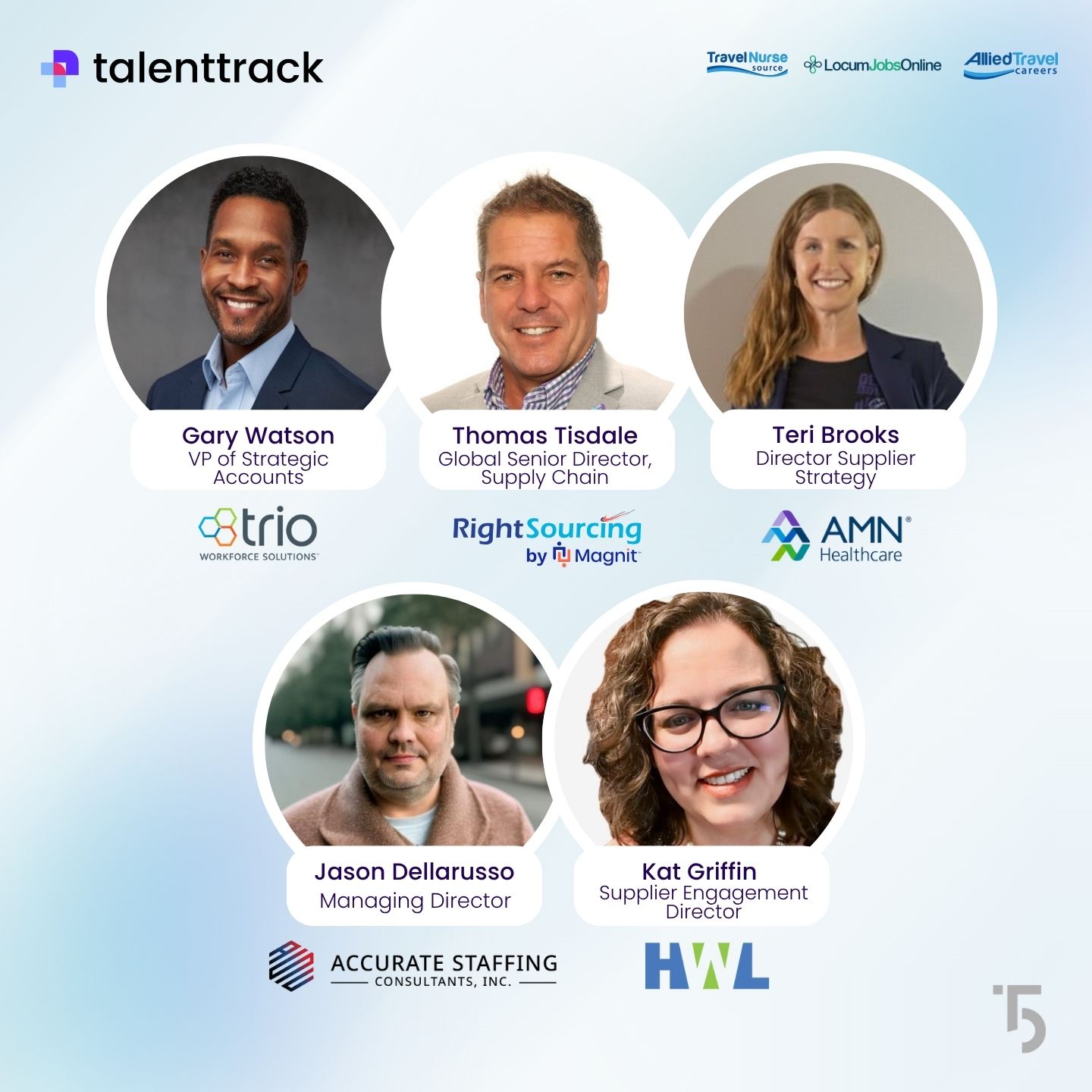Get the vendor POV straight from the source. VMS and MSP leaders pull back the curtain on what they value most in agency partners, what makes or breaks relationships, and how to align for long-term success, featuring Jason Dellarusso of Accurate Staffing Consultants, Inc., Kat Griffin of Healthcare Workforce Logistics (HWL), Gary Watson of Trio Workforce Solutions, Thomas Tisdale of Rightsourcing by Magnit, and Teri Brooks of AMN Healthcare.